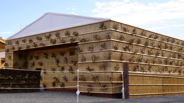 | 大嘗宮の外周は、葦簀(よしず)垣で囲われています。 |