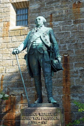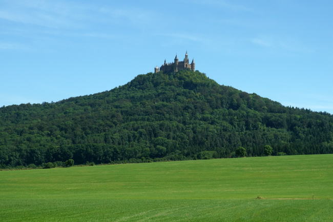 | ホーエンツォレルン城 ウルムを出発して約1時間40分田園風景の中に見える山の上にお城が見えてきました。ホーエンツォレルン城です。 ホーエンツォルレン城はドイツ南西部のシュヴァーベン地方にあるヘヒンゲン(ヘッヒンゲンとも呼ばれます。)近くの標高855mのシュヴァーベン山の上に建てられたお城です。 11世紀当時この地方を支配していたツォルレン家が山の上にツォルレン城を築いたのがはじめで、ツォルレン家はその後ホーエンツォレルン家と名を改めるとともに城の名前もホーエンツォルレン城としました。 しかしながら城は1423年に破壊され、1454年から再建が行われ三十年戦争では要塞として使用されていました。その後城の持ち主が幾たびか変わり、また、要塞としての利用も無くなったことから次第に荒廃し、19世紀の初めには廃墟と化していました。 城が現在の姿で再建されたのは1867年プロイセン王フリードリヒ‐ウィルヘルム4世の時代です。 |
