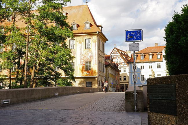 | バンベルク ユネスコの「人類の文化・自然遺産」に1993年に「バンベルクの街」として登録されていて、ときに「フランケンのローマ」とも呼ばれることのあるバンベルクは、ドイツでも最もすばらしく無傷に保存された歴史的な市街地のある街です。街はレグニッツ川の流域にある丘に築かれており、宗教施設が占めるベルクシュタット(大聖堂周辺の「山の街」)と、市民の街であるインゼルシュタット(レグニッツ川の二つの分流の間にある「島の街」)、そしてゲルトナーシュタット(「庭園都市」)の三つの部分からなっています。 |