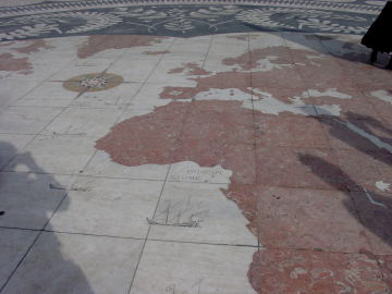 | 発見の地図 発見のモニュメント前の広場には大理石で作られた世界地図があり、ポルトガルが大航海時代に発見した世界各地への到着年が刻まれていて、日本への到着年も彫られてありました。 |
