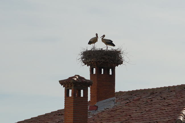 | フェルナン・ゴンザレス門のすぐそばの家の屋根にもつがいでいる所を発見。待つことしばし飛び立つところの撮影に成功。 | ||||||||||