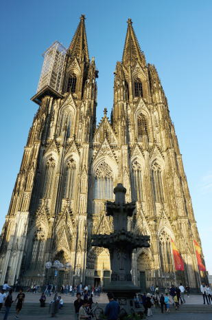 | ケルン ザンクト・ゴアールを出発して約2時間でケルンに到着です。夏のヨーロッパの日没は午後10時過ぎ、午後6時はまだ日も高いので、ホテルで夕食をとったあとでに皆でケルン大聖堂まで腹ごなしの御散歩です。 |