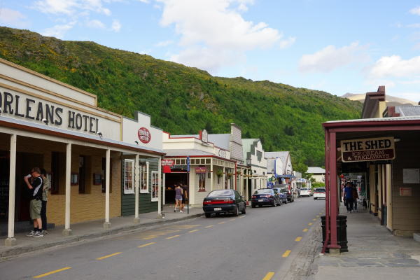 | アロータウン ダニーデンを出発してから途中トイレ休憩を行いアロータウンに着いたのは午後5時を少し過ぎた頃です。ココアロータウンは人口は2000人足らずの小さな街ですが、街を流れるアロー川で1862年に金鉱が発見されたことからゴールドラッシュでにぎわった街で19世紀の街並みが復元されています。 |