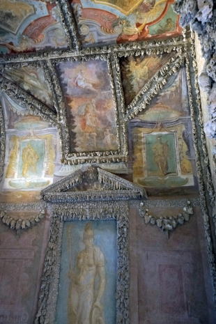 | 写真を撮っていると添乗員さんが「洞窟」に行きますと声をかけてくれました。急いでみんなの後ろについてゆくとそこは人口の洞窟「ブォンタレンティの洞窟」でした。 このブォンタレンティの洞窟は彫刻家ブォンタレンティによって16世紀末に造られたもので、柵がしてありみんなで見ていると係りの人がドアを開けて中に入れてくれました。現地ガイドの方も「私は10年ぶりぐらいに入った」とのこと。 洞窟はイタリア語で「グロッタ」といいますが「グロテスク」の語源でもあるといわれていますけど、この洞窟ちょっと不気味な感じがしませんか。 |