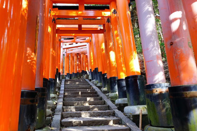 休憩所から更に上ること約5分で山の中腹にある三つ辻に着きます。稲荷山の頂上まではまだ30分くらいかかりそうですが、他にも回って写真を撮りたいのでここでUターンです。 | |||||||||