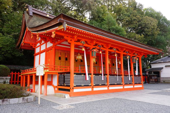 権殿 寛永12年(1635年)に檜皮葺きの五間社流造で建立され、社殿を修理する際などでご神体を仮に奉安するところで仮殿(かりどの)或は若宮とも呼ばれており、重要文化財に指定されています。 |