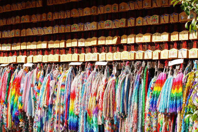 ![]() 東丸神社の合格祈願の絵馬と折り鶴 |