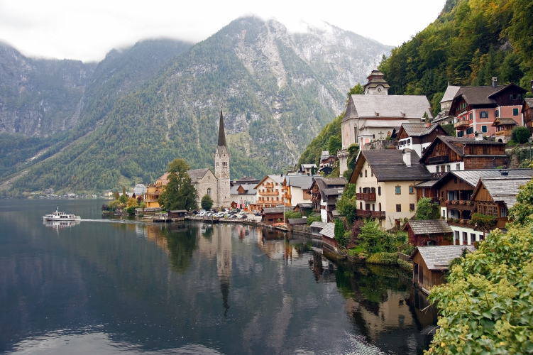 | ハルシュタット グラーツを出てから約40分、ザルツカンマーグート地方にあるハルシュタットに到着となりました。ザルツカンマーグート地方はドイツとの国境に近く、その名も「塩の宝庫」という意味があるそうで、ここハルシュタットもケルト語で塩を意味する「ハル」から街の名前がつけられており、岩塩採掘の街として知られています。 ハルシュタット湖沿いの小さな町で、ダッハシュタイン山塊に囲まれた辺境の地ということで、昔ながらの景観がそのまま残されており、1997年に「ザルツカンマーグート地方のハルシュタットとダッハシュタインの文化的景観」としてユネスコの世界文化遺産に登録されています。 わずか40分くらいの観光ですので、街中の方まで足を延ばすことはできませんでしたが、機会があればまた訪れてゆっくり写真を撮りたい場所の一つとなりました。 |