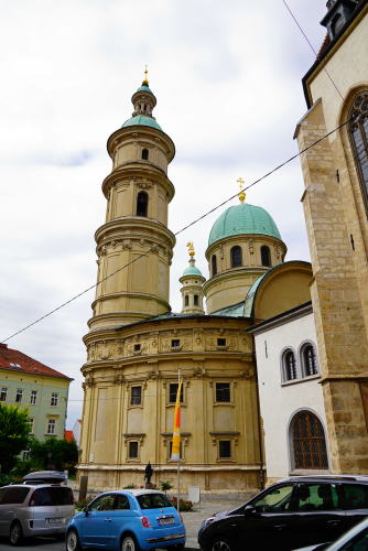 | グラーツ(Graz) 新石器時代に人が住み始め、15世紀には神聖ローマ帝国の首都ともなったことのある歴史のある町グラーツは、シュタイアーマルクの州都であり、オーストリア第2の都市ですが、旧市街及び近郊にあるエッケンベルグ城が、2010年ユネスコの世界遺産に「グラーツの市街-歴史地区とエッゲンベルク城」として登録されています。(当初1999年に「グラーツ歴史地区」として登録されたものを2010年にエッケンベルク城を含めての拡大登録に変更したものです。) 町の郊外にあるホテルを午前8時50分に出発し、中心部に着いたのが9時10分過ぎ、観光開始ですが今日は曇り空です。 |
