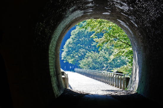 | 第四号隧道(直線で長さは100.3mです。出口の先には第五号隧道が見えています。) | |||