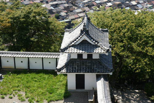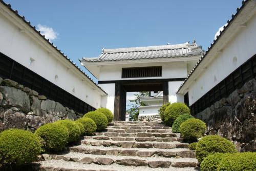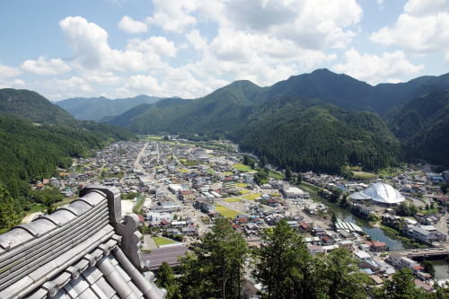 | 郡上八幡城と郡上八幡の町並み(撮影2010.08.27) 郡上八幡城 岐阜県は郡上踊りで知られる郡上市、町を一望できる八幡山(標高354m)の頂上に聳え立つのが郡上八幡城です。戦国時代の末期永禄2年(1559年)に遠藤盛数が砦を築いたのが城の始まりといわれており、その後稲葉、井上、金森、青山氏が城主となっていました。(山之内一豊の妻千代は初代城主遠藤盛数の娘) 明治時代に入って廃城となり石垣を残して取り壊されましたが、昭和8年(1933年)に大垣城を模して天守閣が木造で再建されて現在に至っています。 城に行くには、町中から車で細く曲がりくねった一方通行の道を、何度か切り返しを行いながら登ること約5分で到着します。天守閣からは郡上の町並みが一望できすばらしい景観が望めます。 |