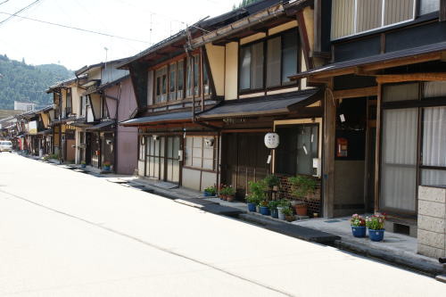 | 郡上八幡の町並み 毎年夏の32日間、江戸時代から続く「郡上踊り」は有名なこの町、昼間でも結構観光客がバスを連ねて訪れており、写真を撮るのに一苦労です。重要伝統的建造物群保存地区に指定されている古い町並みが残っていますが、惜しいのは電柱まで残っていること。これがなければ絵になる町並みなのにちょっと残念。 |