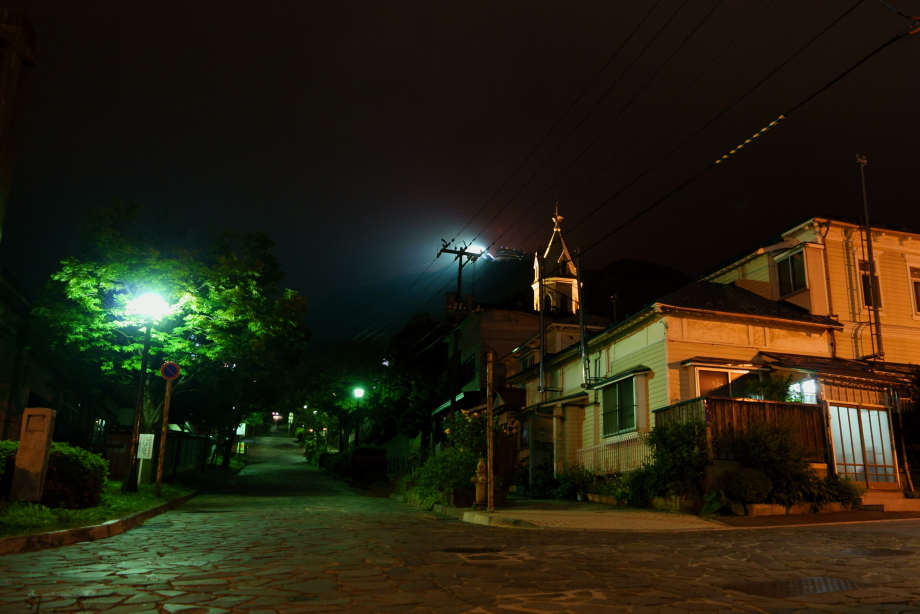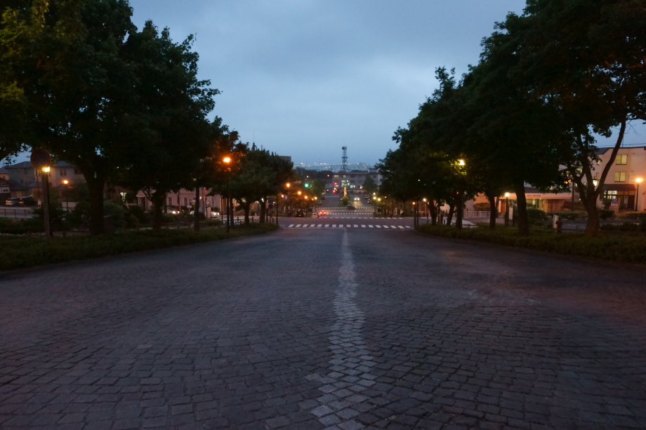 | 南部坂 海峡通りの十字街から函館山ロープウェイ山麓駅の横にいたる坂で、初めは緩やかですが途中から傾斜がきつくなってきます。 坂の名前は江戸時代に幕府が蝦夷地を直轄していた時期に南部藩の陣屋が置かれていた(ロープウェイの駐車場のところに陣屋がありました。)ことに由来しています。市民の間では近くに丸井百貨店があったがあったことから「丸井の坂」とも呼ばれています。 写真は坂の最上部から十字街方向を撮っています。 |