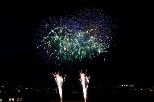 | あつぎ鮎まつり花火大会(撮影2010.08.07) 毎年8月の第1土曜日に開催されているこの花火大会、打上げ数10000発は神奈川県内の花火大会では最大規模、見物客は毎年60万人以上が訪れ、打上げ場所の河川敷とその周辺は見物客でいっぱいとなります。 |