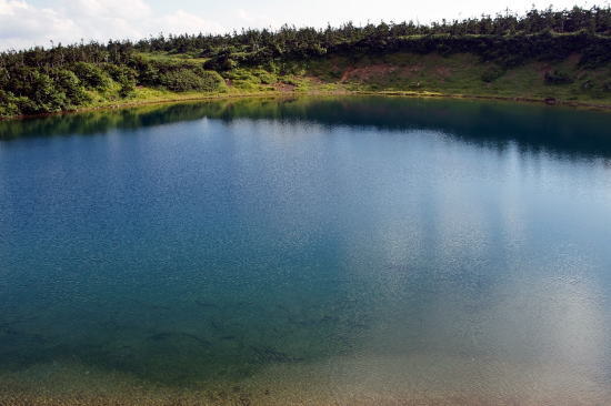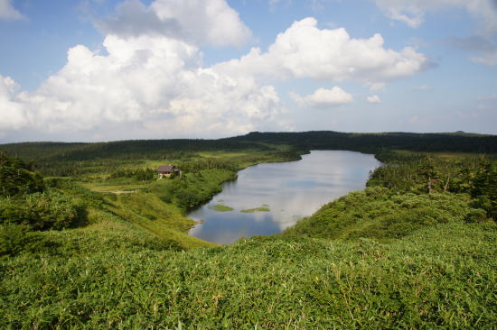 | 八幡平 岩手県と秋田県の県境に広がる八幡平は奥羽山脈の北部にあたり、火山から形成された峰々や無数の沼や湿原が点在しており手付かずの原生林が残っています。伝説によると奥州征伐にこの地を訪れた坂上田村麿が八幡神宮を奉り戦勝祈願を行い、勝利後再び訪れて「八幡平」と名づけたとのことですが、実際には坂上田村麿はここに至ってないようです。 雪深いこの地方は4月下旬まで道路も閉鎖されるとのことですが、6月から8月にかけて多くの高山植物が咲くことで観光客も多く訪れているようです。八幡平には5つの散策コースがありますが我々ツアー客は見返峠にある駐車場から八幡沼・ガマ沼展望台コースを写真を撮りながら散策です。 |