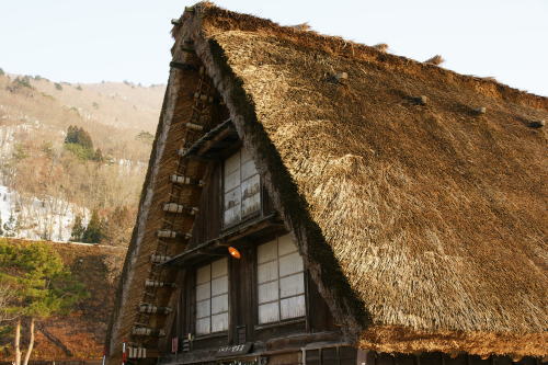 | 白川郷 岐阜県内を流れる庄川沿いにある白川村、江戸時代に建てられた合掌造りの集落で、平成7年(1995年)に「白川郷・五箇山の合掌造り集落 」 として世界文化遺産に登録されています。 訪れたこの日は先週の暖かさと前日の雨で雪も少なくなり、家々の屋根には雪が全く残っておらず、写真的には不満が残るものとなりました。 |