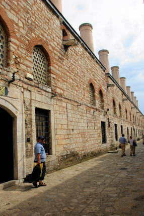 第一庭園とアヤ・イリニ教会 皇帝の門をはぃると第一庭園が広がっています。第一庭園は別名「イェニチェリ広場」と呼ばれ、当時最強を誇ったオスマン・トルコ軍(イェニチェリ)の出陣式が行われたところだそうです。 アヤ・イリニ教会は4世紀に建てられたイスタンブール最古の教会で、現在のものは8世紀のものだそうです。 |