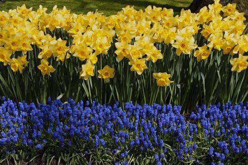 | 左からスイセン、ムスカリと水仙、チューリップ | |||