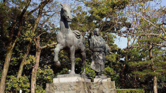![]() 内助の功で知られる山内一豊婦人千代と名馬の像(杉の段のところにあります) |