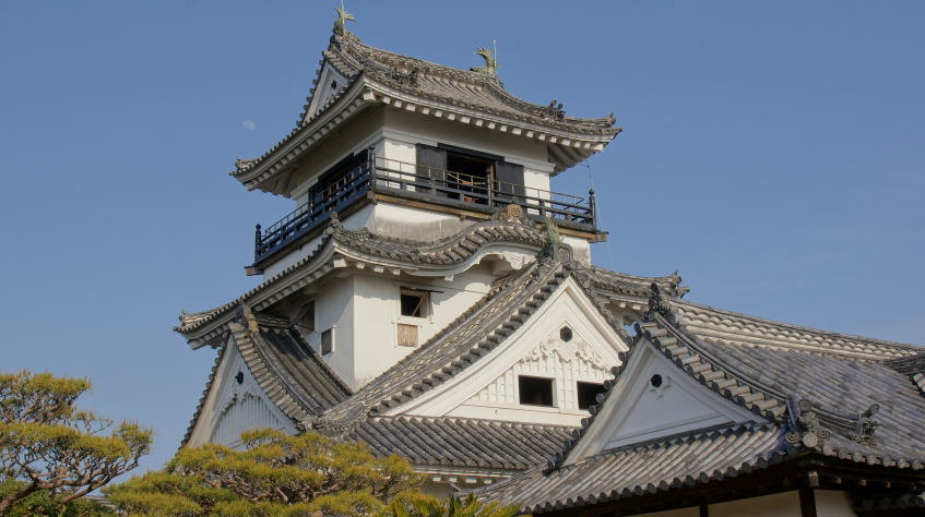 | 高知城 慶長6年(1601年)遠江国掛川から土佐へ入城した山内一豊が、浦戸城(桂浜を見下ろす小高い丘の上にありました。)に入城した後に、高知平野にある江の口川と鏡川の間にある大高坂山に掛川城を参考にして築城開始。同8年に完成したのがこのお城です。大高坂山は後に河中山、高智山と名前が変えられたとのことですが、この高智山が現在の高知という地名の元となったようです。 高知城は明治時代の廃城令、太平洋戦争の戦火を免れた現存12天守のひとつであり、天守閣を初めとして追手門、黒鉄門(くろがねもん)等が国の重要文化財に指定されて下り、日本100名上の84番にも選定されています。 |