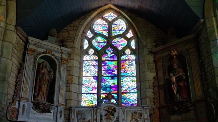 | 聖ロナン教会(Église Saint-Ronan)とペニティ礼拝堂(la chapelle du Pénity) 村の中心部である教会前広場にあり、14世紀の後半に建てられ高さ43mの鐘楼を持つこの教会は、聖ロナンの名に因んで名付けられており、19世紀の初めに起きた半島戦争の際に破壊されましたが、その後修復されており、現在は歴史的建造物として指定されています。 教会の右側にあるのは、15世紀の半ばにルイ12世の娘ルネ・ド・フランスによって建造されたペニティ礼拝堂で、聖ロナンの墓があります。 |