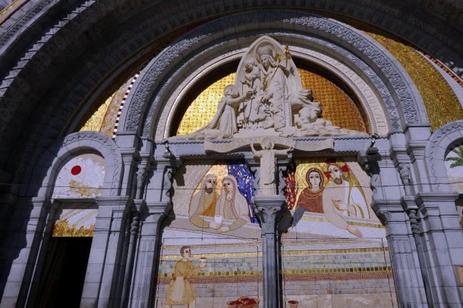 | ノートルダム・デュ・ロゼール ロザリオ大聖堂 ロザリオ聖堂或いはロザリオ・バジリカとも呼ばれており、毎年7月から10月まで毎晩9時から行われるミサには世界各地から年間で600万を超える信者が訪れているとのことで、この日もロウソクを片手に捧げた多くの信者が長い行列を作っていました。 |