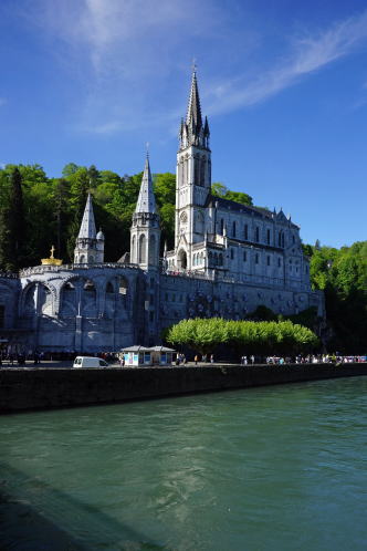 | 聖地ルルド 成田を出発してからまる1日以上かかってようやくルルドに到着です。 スペインとの国境に程近いピレネー地方を流れるガーヴ・ド・ポー川の畔にある人口2万人にも満たない小さな町ルルド、聖母マリアが出現しいくつもの奇跡が起きたことで知られており世界各地から多くのカソリック信者が訪れるとのことであり町には多くのホテルが建ち並んでいます。 |