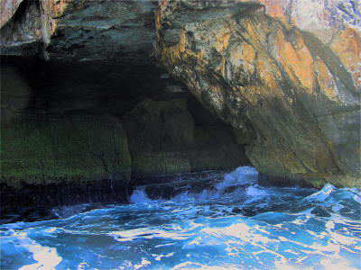 | ブルーグロッド このようなブルーグロッド(青の洞門)が何箇所かあり、5〜6人乗りの小さな船で見て回りますが、船が中まで入れるほどの大きさではありません |