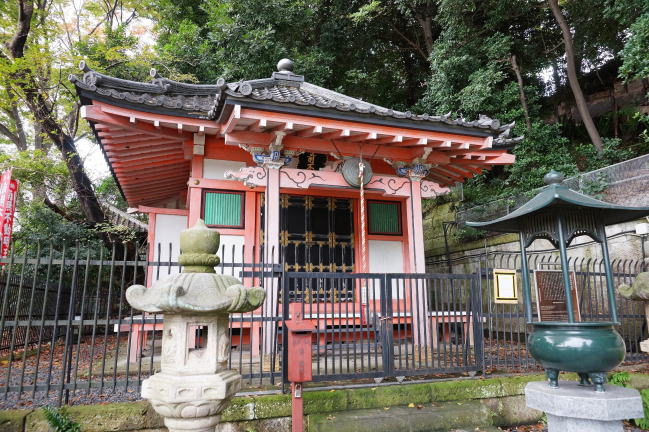 目黒不動尊から東へ3分ほど歩いたところにある成就院は、天安2(858)年に慈覚大師により開山されたお寺で、慈覚大師が自身の眼病平癒のために作ったものに由来するとされており、大師作といわれる本尊の薬師如来像が三匹の蛸に支えられています。