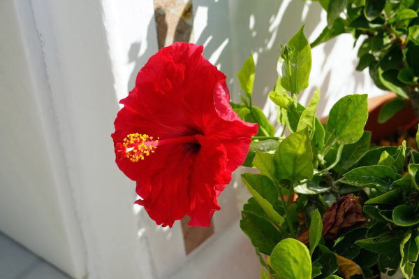 | 白壁にハイビスカスの花がよく映えます。 | ||||||||