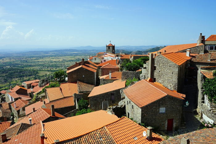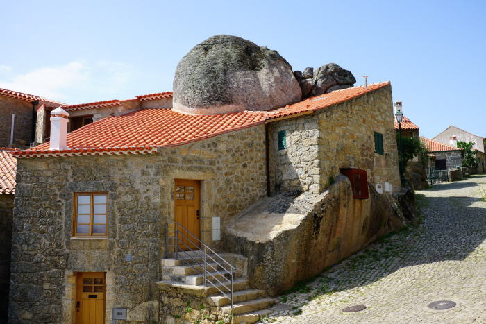 | 巨石の村モンサント 一昨年の秋に、テレビの番組で巨石の村というのを見て一度行ったみたいと思い、ネットで調べていたところ、U社のツアーにあるのを発見。早速京都にいる旅友のSさんに連絡、二人で行ってみようと申し込みましたが、人数がそろわず催行不可のこと。 今回のツアーに参加したのは、ここモンサント(Monsanto).が含まれていることも一つの理由でした。但し、Sさんは、現役のため10日以上のツアーは仕事の関係上参加できず一人での参加です。 トマールを出発して約2時間、スペイン国境にほど近いエストレラ山脈の南東部に位置する標高760mの高地にある、モンサントに到着します。 モンサントとはポルトガル語で「Monte Santo」、聖なる山からきているとのことで、巨石のある特異な地形から聖なる場所として崇められていました。 村は100人足らずの人口ですが、かつて「最もポルトガルらしい村」に選ばれたこともあり、最近では「ヨーロッパの美しい村30選」にも選ばれています。 |