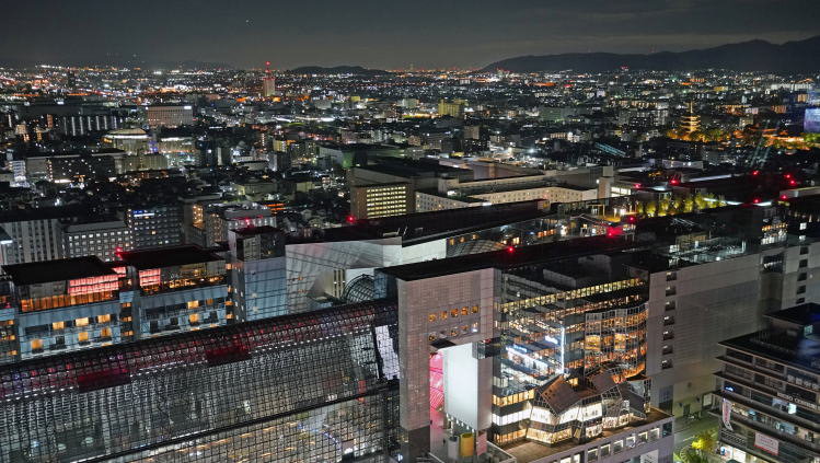 | 手前は京都駅、奥の右寄りに東寺の五重塔が見えます。 |