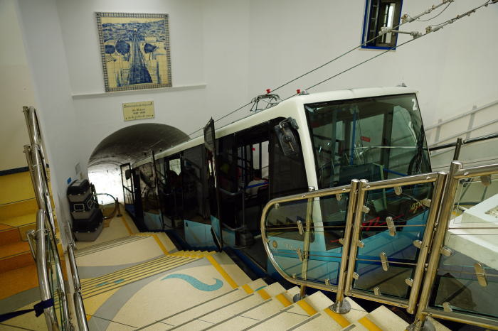 | 駅にはケーブル開通100周年記念のアズレージョがあります。1889年の開通ということですから130年近い歴史があるケーブルです。シティオ地区からプライア地区まではわずか2分ほどで到着します。 | ||||||||