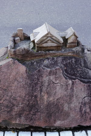 | 市内中心部の十三日町の歩道にはいろいろなモニュメントが置かれています。 | ||||||||||