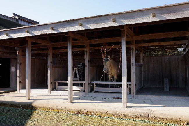 | 馬屋 馬屋には上馬屋(右の写真)、中馬屋(下左)、下馬屋(下右)があり、上馬屋は当主が用いていた馬を繋いでいたところで、中馬屋は馬房と物置と使われていたようです。又、下馬屋は建物は復元されておりませんが、冬の間の馬房となっていて、馬具や飼葉などの飼料も蓄えられていました。 |