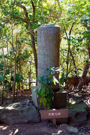 安永9(1780)年に建てられた円筒形という珍しい形の句碑で、「芭蕉翁四時遺章」として春夏秋冬の句が、一句ずつ刻まれています。