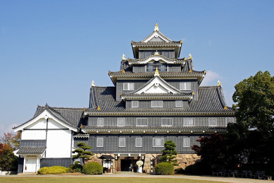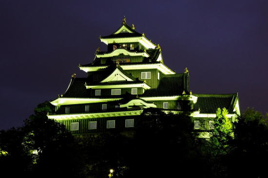 | 岡山城(2012年11月6日撮影) 私の先祖発祥の地岡山、父が東京に移住して以来一度も訪れたことはありませんでしたが、古希になったのを記念して訪れてみました。亡き父の話では先祖は戦国大名宇喜多秀家の家臣であったとか。先祖のお墓参りをした後に岡山城に行ってみました。 黒い下見板張りの外観から別名「 城は昭和の初期に国宝に指定されましたが、第2次世界大戦の末期に空襲で天守閣と石山門を焼失しており、天守閣は昭和41年(1966年)に旧来通りに再建されています。 |