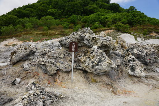 | 霊場恐山(2013.06.03撮影) 八戸を出発してから約3時間ようやく下北半島の中央部にある恐山の入口に到着します。ここ恐山は高野山、比叡山とならぶ日本三大霊場のひとつですが、恐山という名前の山はなくカルデラ湖である宇曽利湖の周りの釜臥山を中心とした八峰の総称とのことです。 |