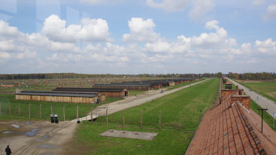 | ビルケナウ第2強制収容所 第1強制収容所からバスで約10分のところにビルケナウがあります。ポーランド語ではブジェジンカと呼ぶ小さな村ですが、ここにドイツ軍が1941年にビルケナウ第2強制収容所を建設したのです。東京ドーム37個分にも匹敵する広大な敷地のビルケナウは、アウシュヴィッツよりも大規模なものであり、ここで数十万人もの人たちが虐殺されたとのことで、当時300棟以上の建物がソ連兵捕虜達によって建設され、現在その一部が当時のまま残されており、内部もそのまま保存されている棟もあります。 |
