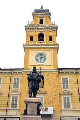 | パルマ 午前10時シルミオーネを出発したバスは途中トイレ休憩を行った後に午後0時45分パルマに到着します。 ここパルマは「美食の都」として知られており「パルメザンチーズ」、「パルマハム」の特産地ですが、その歴史は古代エルトリア人によって町が造られ、中世には自治都市として栄え16世紀半ばから19世紀のイタリア統一までの長い間パルマ公国の首都でした。 |