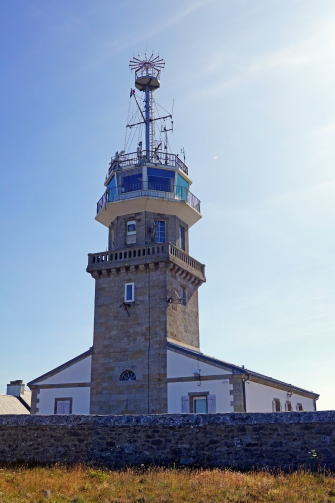 | マリア像から岬の先端に向かって歩くと海上に灯台が見えます。ヴィエイユ灯台(Phare de la Vieille)です。燈台は19世紀の終わりに岬から約1.5kmの所に建てられました。 岬と灯台の間は海流が早いようで渦を巻いており、白波も見えています。 写真の下側に赤いものが見えますが、どうやらこの先まで道も続いていて岬の先端まで行くことができそうですけど、がれ場となっており一歩足を踏み外せばそのまま下まで落ちてドブンとなりそうです。 |