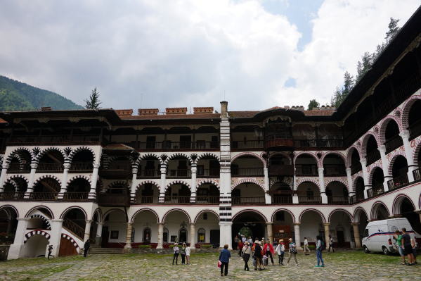 | リラ修道院 ソフィアから約120km離れ<、標高1150mの所にあるリラ修道院(リラの僧院或いはリラの聖ヨハネ修道院とも呼ばれています。)は、ブルガリア正教会の中で最も著名な修道院で、10世紀の半ばに創設されたと伝承されており、現在の建物は14世紀にこの地に再建されたものですが、14世紀末にオスマントルコの破壊を受けたり、19世紀半ばには火災による損害受け、19世紀後半に修復が行われています。 この修道院はブルガリアにおいて最も文化的、歴史的、建築学的に重要な遺跡の一つであると評価されていることから多くの観光客が訪れています。最盛期には1000人近い修道士たちがここで修行をしていたとのことですが、現在ではわずか10人前後となっているようです。 リラ修道院は1983年にユネスコの世界文化遺産に登録されています。 |