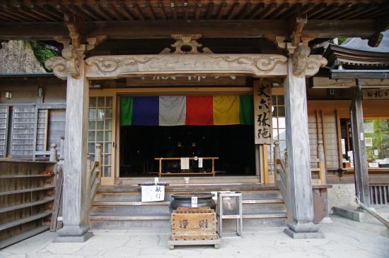| 奥の院と大仏殿 階段を上って右側にあるのが明治5年に再建された奥の院、正式名称は如法堂といい、慈覚大師が修行中常に持っていた釈迦如来と多宝如来が本尊となっています。 左側には大仏殿があり毎日卒塔婆供養が行われており、お彼岸の中日の施餓鬼供養では数千人の人が訪れるとのことです。 |