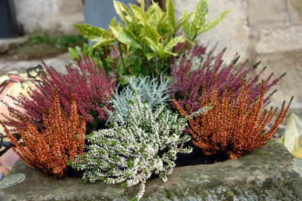| エリカ(ヒース)の花 ドイツ北部にはエリカ街道と言う名前の街道があるくらいですが、ここローテンブルグの街中にも色とりどりのエリカの花が道筋に咲いていました。 |
