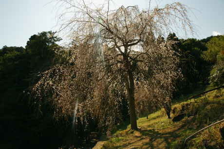 | 長興山紹太寺 江戸時代初期に当時の小田原城主であった稲葉氏の菩提寺として開山され、春日の局の墓所となっています。樹齢300年を越す枝垂桜は見事なものですが、これを見るためには300段以上の階段を登るか、遠回りして坂道を結構歩かなければなりません。訪れたときは午後となっていたため逆光での撮影となってしまいました。 |