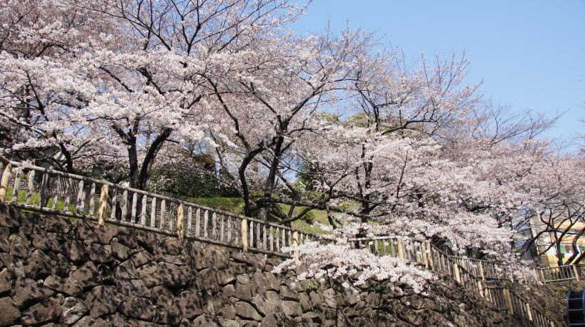 | 音無親水公園(2011.04.04撮影) 山手線王子駅を降りてすぐのところにあるこの公園、地下にもぐった石神井川の流路を利用して造られた公園です。この地域の人は昔から石神井川を音無川と呼んでいたことからこの名前がついたとか。地震の影響を受けて節電のためポンプが作動しておらず水は流れていませんでしたが桜は満開状態でした。 |