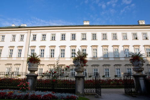 | ミラベル宮殿 17世紀の初めに大司教ヴォルフ・ディートリヒが愛人のために建てたとのことですが、19世紀の初めに火災にあい殆んどの部分を焼失し、クラシック様式で再建したもので、現在は市役所、図書館、ホールとして使用しているそうです。 |