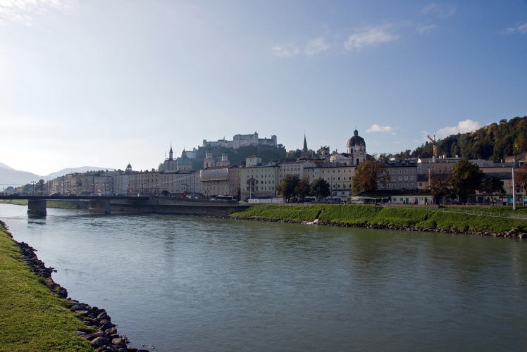 ![]() ザルツァッハ川越しに見るホーエンザルツブルク城(マカルト小橋より撮影) |