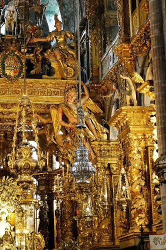 | サンティアゴ・デ・コンポステーラ大聖堂 814年に聖ヤコブの遺骸が発見されたことで小さな教会が建てられたのが始まりで、その後イスラム勢力により破壊されるも11から12世紀にかけて再建され、増改築を繰り返して現在の姿となりました。 |