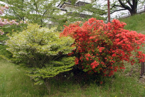 | 白河城(撮影2010.05.15) 別名「白河小峰城」、「小峰城」と呼ばれるこの城は福島県の白河市にあります。白河市の中心部に位置するこの城は、現在城山公園として整備され、6月には併設されているバラ園が開園するようですが、訪れたときは半月早くあいにくの曇り空となっていました。 城は南北朝時代の1340年ころに結城氏が築城して小峰城と名付けたのが始まりとされており、その後、蒲生氏、上杉氏、丹羽氏、松平氏及び阿部氏等と支配が変遷し、最終的には幕府直轄領となって二本松藩の預かりとなり、戊辰戦争では奥羽越列藩同盟(陸奥、越後、出羽等の諸藩が加盟)と新政府軍と戦いの場となって焼失したとのことです。 現在は、復元された一部の石垣、前御門及び天守に相当する三重櫓があるだけとなっています。 |
